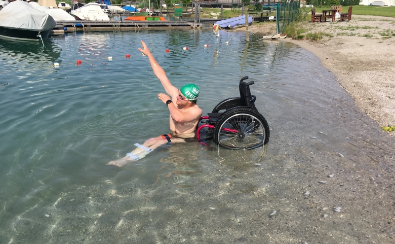 Noch vor Beendung der Reha besorgte er ein Handbike und fing an für seinen ersten Triathlon im Rollstuhl zu trainieren.